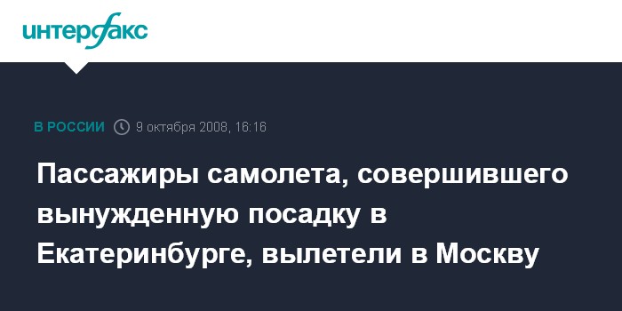 Москва.9 октября. INTERFAX.RU - Пассажиры рейса авиакомпании "Уральские авиалинии" N294 Екатеринбург-Москва, который совершил вынужденную посадку в аэропорту "Кольцово" (Екатеринбурга), вылетели в Москву на резервном самолете.