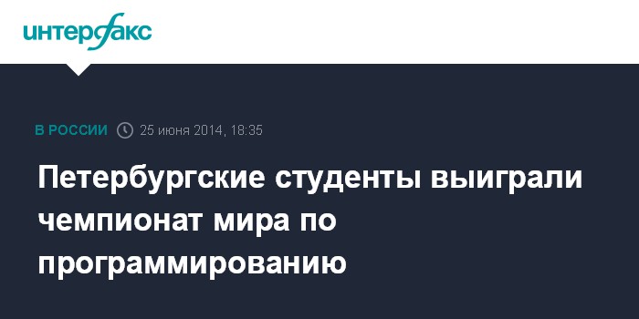 Москва. 25 июня. INTERFAX.RU - Студенты Санкт-Петербургского государственного университета стали победителями 38-го студенческого чемпионата мира по программированию Ассоциации вычислительной техники (ACM-ICPC), сообщила пресс-служба университета в среду.