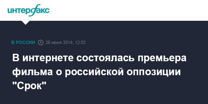 Москва. 26 июня. INTERFAX.RU - Документальный фильм "Срок" Александра Расторгуева, Павла Костомарова и Алексея Пивоварова появился в интернете. Фильм был опубликован на YouTube. В 12:00 по московскому времени он был выложен в паблике "Лентач" в социальной сети "ВКонтакте".