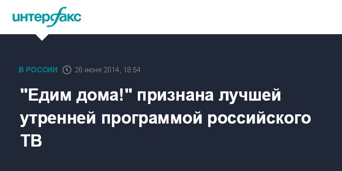 "Едим дома!" признана лучшей утренней программой российского ТВ