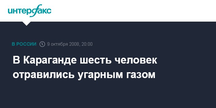 Москва. 9 октября. INTERFAX.RU - В Караганде отравились угарным газом и были госпитализированы шесть работников частного предприятия "Вторчермет".