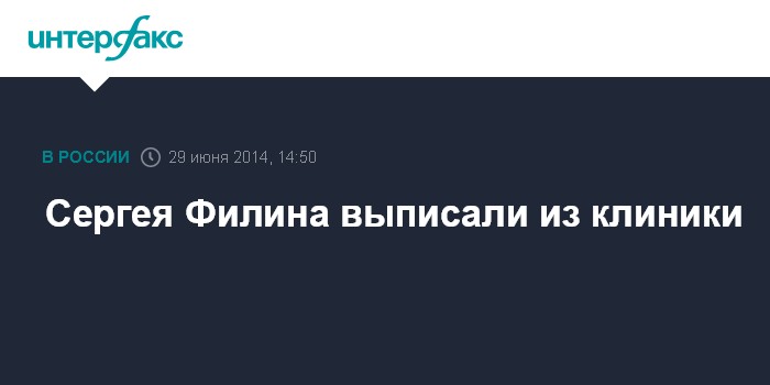 Москва. 29 июня. INTERFAX.RU - Художественный руководитель балета Большого театра Сергей Филин выписан из больницы, сообщил "Интерфаксу" руководитель столичного департамента здравоохранения Георгий Голухов. "Сергей Филин выписан из НИИ имени Склифосовского в воскресенье. В настоящее время его состояние оценивается как нормальное", - сказал он.