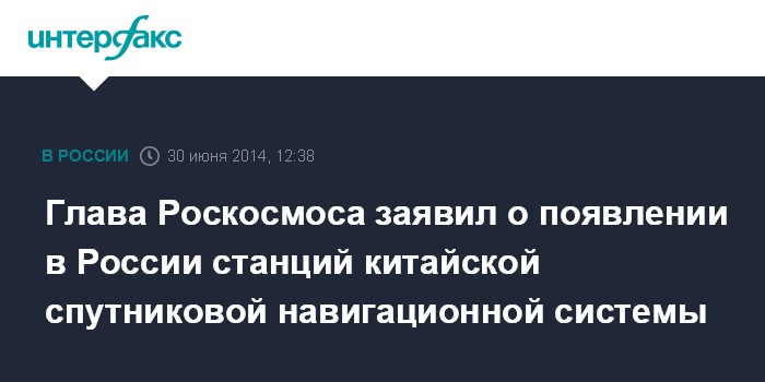 Москва. 30 июня. INTERFAX.RU - Глава Роскосмоса намерен посетить Китай для обсуждения различных направлений сотрудничества, в том числе взаимного размещения станций ГЛОНАСС и BEIDOU.