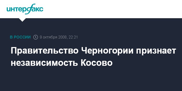 Белград. 9 октября. ИНТЕРФАКС - Решение признать независимость Косово приняло правительство Черногории, заявил в четверг вечером черногорский министр иностранных дел Милан Рочен.