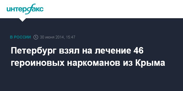 Москва. 30 июня. INTERFAX.RU - Городская наркологическая больница Санкт-Петербурга приняла полсотни героиновых наркоманов из Крыма, которых, пока полуостров находился в составе Украины, лечили метадоновой заместительной терапией.