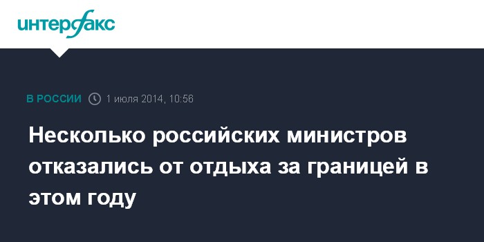 Москва. 1 июля. INTERFAX.RU - Ряд членов правительства РФ подтвердил "Интерфаксу", что планы на отдых текущим летом связаны с Россией.