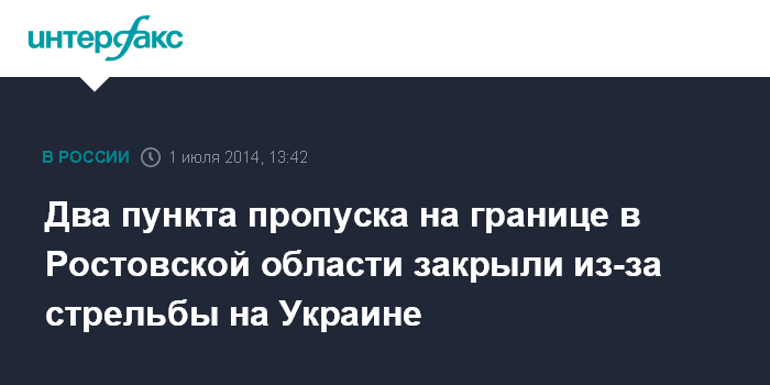 Москва. 1 июля. INTERFAX.RU - Пограничные пункты пропуска Гуково и Новошахтинск в Ростовской области во вторник днем закрылись из-за стрельбы на сопредельной территории Украины, сообщил "Интерфаксу" источник в правоохранительных органах региона.