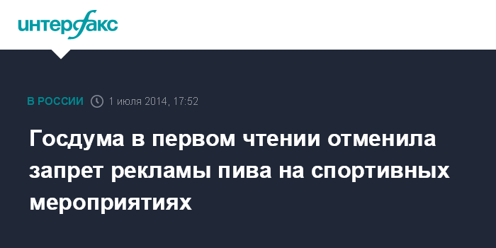 Госдума в первом чтении отменила запрет рекламы пива на спортивных мероприятиях