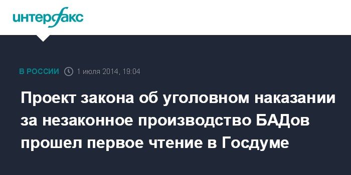 Проект закона об уголовном наказании за незаконное производство БАДов прошел первое чтение в Госдуме