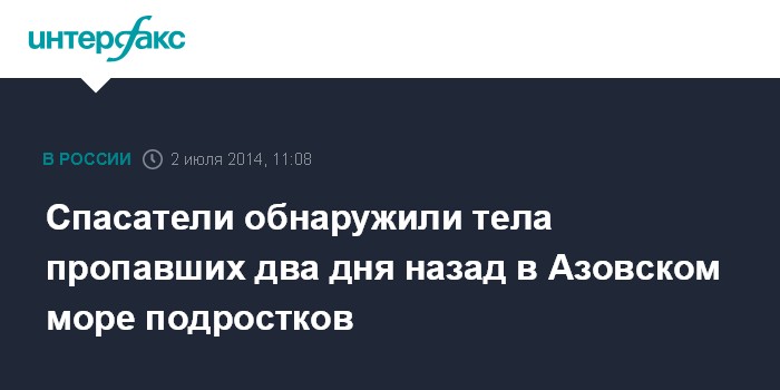 Москва. 2 июля. INTERFAX.RU - В ходе поисковых мероприятий в акватории Азовского моря обнаружены тела двух подростков, пропавших два дня назад, сообщил во вторник сайт следственного управления СКР по Краснодарскому краю.