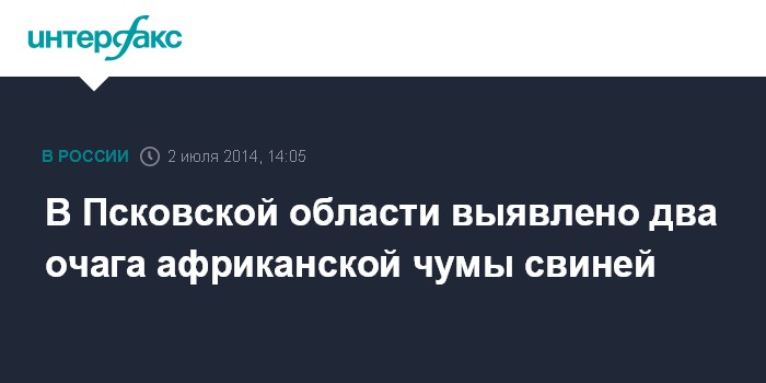 Москва. 2 июля. INTERFAX.RU - Специалисты в Невельском районе Псковской области выявили два очага африканской чумы свиней (АЧС), сообщил "Интерфаксу" заместитель губернатора Максим Жаворонков.