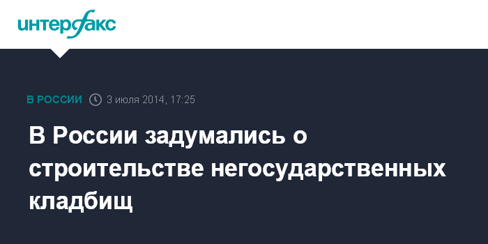 Москва. 3 июля. INTERFAX.RU - Министр строительства и ЖКХ РФ Михаил Мень заявил, что ведомство рассматривает возможность строительства негосударственных кладбищ.
