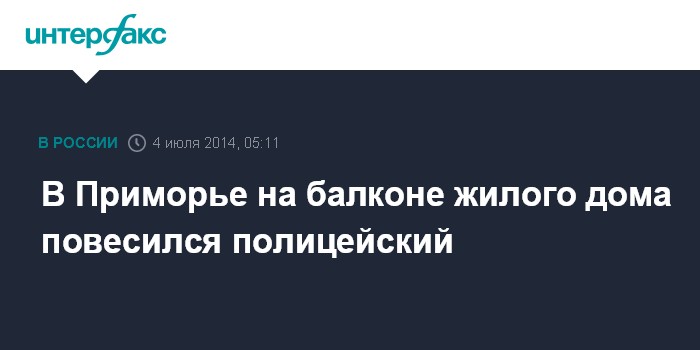Москва. 4 июля. INTERFAX.RU - На балконе жилого дом в приморском городе Дальнегорск обнаружено тело полицейского.