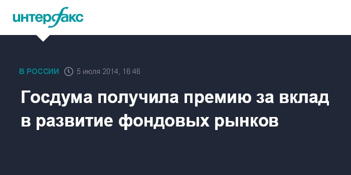 Москва. 5 июля. INTERFAX.RU - Госдуму удостоили престижной премии за существенный вклад в развитие фондового рынка, сообщила глава комитета Госдумы по финрынку Наталья Бурыкина ("Единая Россия"). "Учредителем этой премии является одна из старейших ассоциаций - Национальная ассоциация участников фондового рынка, которой более 20 лет и которая объединяет экспертов, организации и биржи", - сказала она журналистам в субботу.