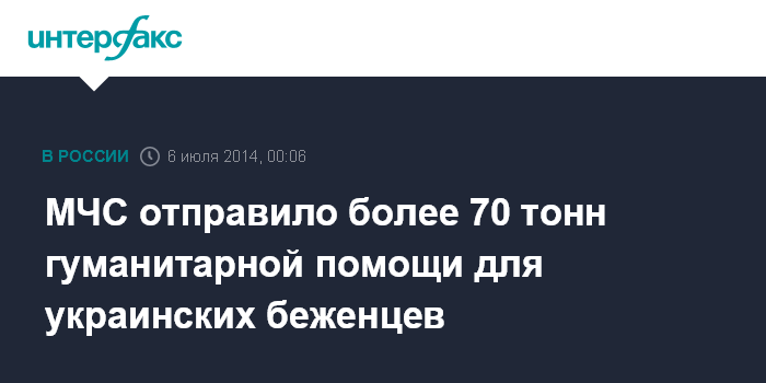 Москва. 6 июля. INTERFAX.RU - МЧС России направило гуманитарную помощь для украинских беженцев, находящихся в Волгоградской области, сообщил официальный представитель МЧС России Александр Дробышевский.