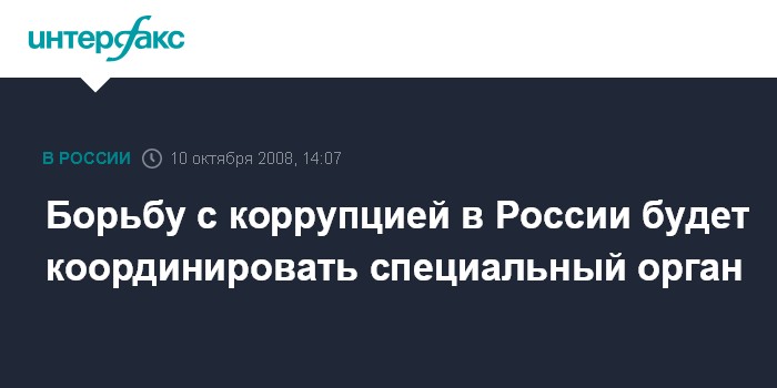 Москва. 10 октября. INTERFAX.RU - Для эффективной борьбы с коррупцией в России планируется создать единый координирующий орган. Его формирование предусмотрено проектом федерального закона "О противодействии коррупции", текст которого опубликован на сайте президента РФ.