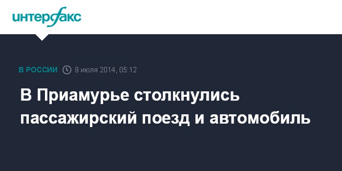 Москва. 9 июля. INTERFAX.RU - Три человека пострадали при столкновении пассажирского поезда и автомобиля, которое произошло на железнодорожном переезде у амурского села Бочкаревка в среду утром, сообщает ГУ МЧС РФ по Амурской области.