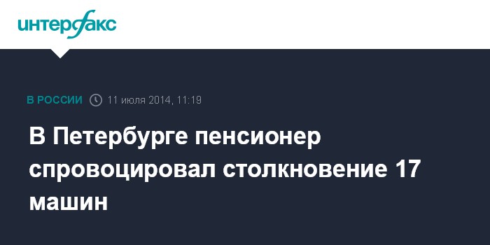 Москва. 11 июля. INTERFAX.RU - Пожилой водитель легкового автомобиля спровоцировал массовое ДТП в Кировском районе Санкт-Петербурга, сообщили "Интерфаксу" в управлении ГИБДД региона в пятницу.
