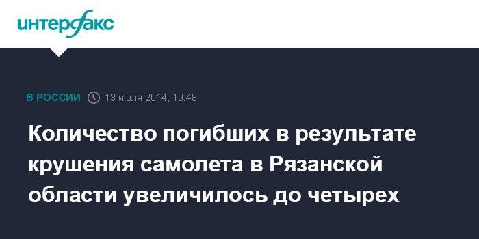 Москва. 13 июля. INTERFAX.RU - Тела четырех погибших найдены на месте падения легкомоторного самолета в Рязанской области, сообщает управление МВД по Рязанской области.