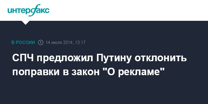 СПЧ предложил Путину отклонить поправки в закон "О рекламе"