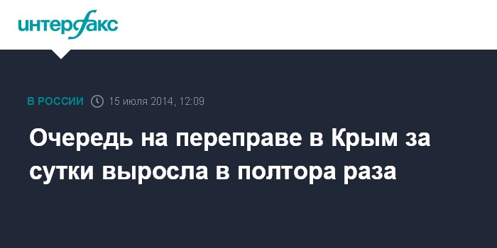 Москва. 15 июля. INTERFAX.RU - Очередь из ожидающих переправы через Керченский пролив в районе порта "Кавказ" на Кубани за сутки достигла 2 тыс. автомобилей, в порту "Крым" - около 300 машин, сообщает Единая транспортная дирекция (оператор переправы) во вторник.