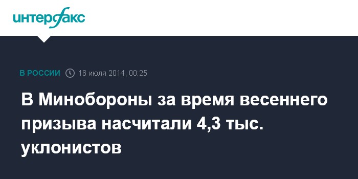 Общее количество граждан, уклонившихся от призыва на военную службу весной 2014 года, составило 4334 чел.