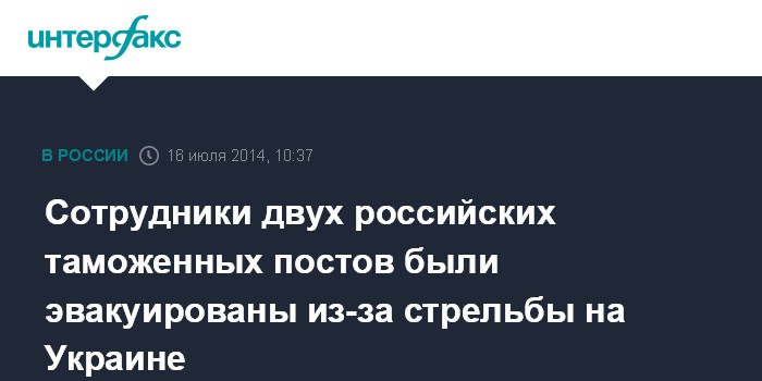 Москва. 16 июля. INTERFAX.RU - Ночью и утром в среду проводилась эвакуация сотрудников российских таможенных постов "Новошахтинск" и "Куйбышево" из-за стрельбы на территории Украины, сообщили агентству "Интерфакс" в пресс-службе Южного таможенного управления.