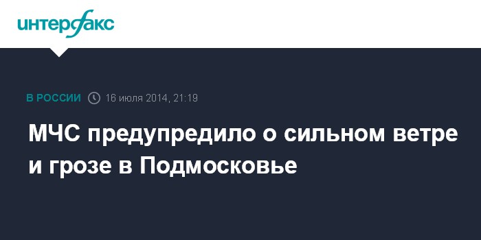 Москва. 16 июля. INTERFAX.RU - Ливень с грозой и сильный ветер ожидаются на территории Московской области вечером в среду, предупреждает ГУ МЧС по региону.