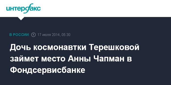 Дочь космонавтки Терешковой займет место Анны Чапман в Фондсервисбанке