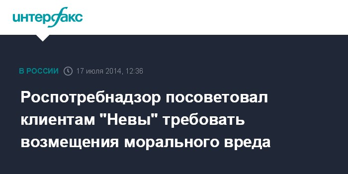 Роспотребнадзор посоветовал клиентам "Невы" требовать возмещения морального вреда