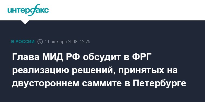 Глава МИД РФ обсудит в ФРГ реализацию решений, принятых на двустороннем саммите в Петербурге