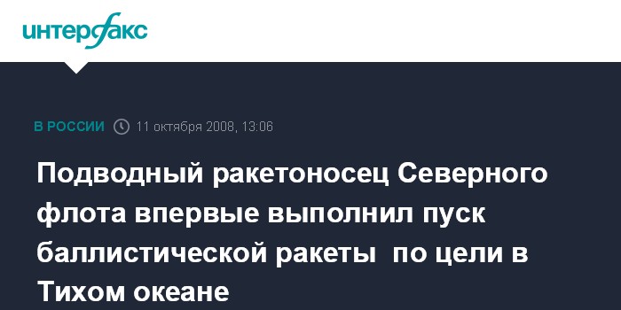 Москва. 11 октября. INTERFAX.RU - В России впервые произведен пуск баллистической ракеты морского базирования по цели в районе Тихого океана.