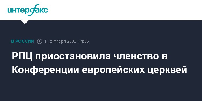 Москва. 11 октября. INTERFAX.RU - Русская православная церковь в субботу приостановила членство в Конференции европейских церквей, сообщили "Интерфаксу" в Отделе внешних церковных связей Московского патриархата.