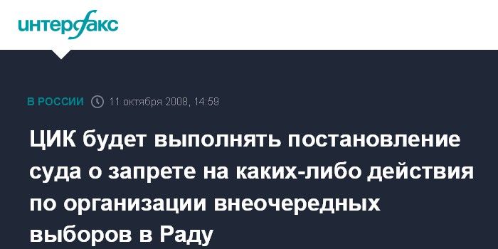 Москва. 11 октября. INTERFAX.RU - Центральная избирательная комиссия будет выполнять постановление Окружного административного суда Киева о запрете на осуществление каких-либо действий по организации внеочередных парламентских выборов, заявил заместитель председателя ЦИК Андрей Магера.