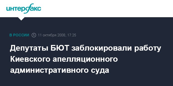 Москва. 11 октября. INTERFAX.RU - Ряд депутатов Блока Юлии Тимошенко физически блокируют работу Киевского апелляционного административного суда (ул. Полесская), в котором секретариат президент Украины обжаловал постановление Окружного административного суда Киева о приостановлении действия указа №911/2008 "О досрочном прекращении полномочий Верховной Рады Украины VI созыва и назначении внеочередных выборов".