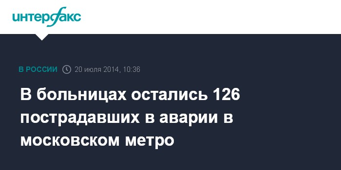 Москва. 20 июля. INTERFAX.RU - Лечение в больницах продолжают более 120 пострадавших в результате крушения поезда в столичном метро, сообщил "Интерфаксу" источник в медицинских кругах.