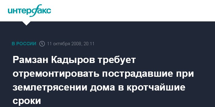 Рамзан Кадыров требует отремонтировать пострадавшие при землетрясении дома в кротчайшие сроки