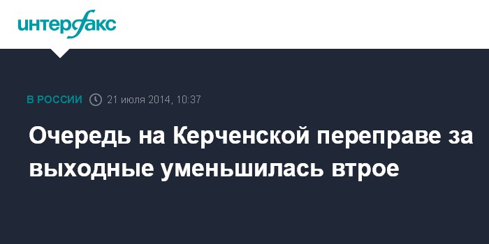 Москва. 21 июля. INTERFAX.RU - Очереди на переправу через Керченский пролив в понедельник утром в порту "Кавказ" ожидали порядка 400 автомобилей, в порту "Крым" - 15 машин, сообщила Единая транспортная дирекция.