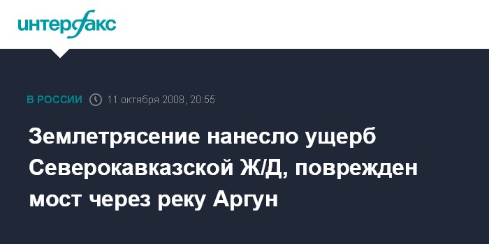 Землетрясение нанесло ущерб Северокавказской Ж/Д, поврежден мост через реку Аргун