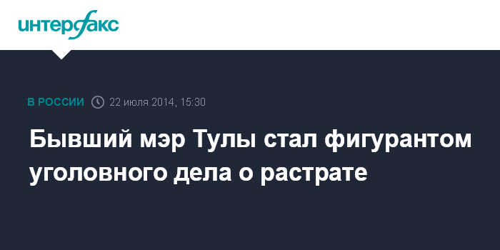 По его словам, бывший глава Тулы подозревается в совершении преступления, предусмотренного ч. 4 ст. 160 УК РФ ("Растрата в особо крупном размере").