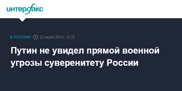 Москва. 22 июля. INTERFAX.RU - Президент Владимир Путин заявил, что суверенитету России на данный момент ничего не угрожает.