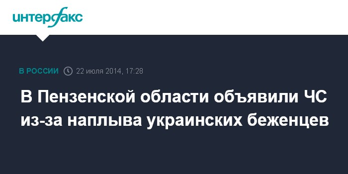 Москва. 22 июля. INTERFAX.RU - В Пензенской области объявили режим ЧС в связи наплывом украинских беженцев, сообщила пресс-служба областного правительства со ссылкой на распоряжение губернатора от 22 июля.