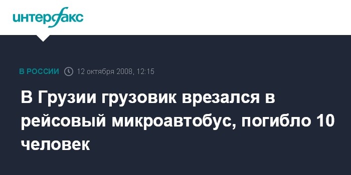 Как сообщили в воскресенье "Интерфаксу" в патрульной полиции, рейсовый микроавтобус, направлявшийся в Тбилиси, столкнулся с грузовым автомобилем марки "Урал". На месте погибли 10 пассажиров микроавтобуса.