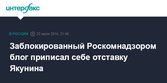 Заблокированный Роскомнадзором блог приписал себе отставку Якунина