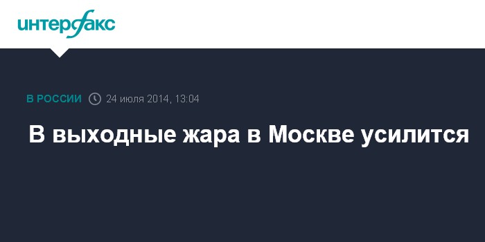 Москва. 24 июля. INTERFAX.RU - В предстоящие выходные и в начале следующей недели жара в столичном регионе усилится, сообщили "Интерфаксу" в Гидрометеобюро Москвы и Московской области в четверг.