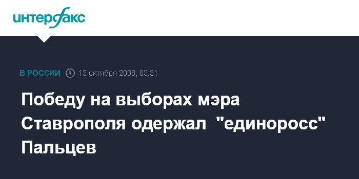 Ставрополь. 13 октября. ИНТЕРФАКС-ЮГ - В Ставрополе по итогам воскресного голосования уверенную победу на выборах мэра города одержал исполняющий полномочия главы города Николай Пальцев, на выборах в городскую думу, которые впервые прошли по пропорциональной системе, партия "Единая Россия".