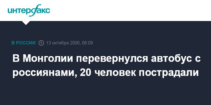 Москва. 13 октября. ИНТЕРФАКС - В Монголии в аварию попал пассажирский автобус с россиянами, сообщает в понедельник телеканал "Вести-24".