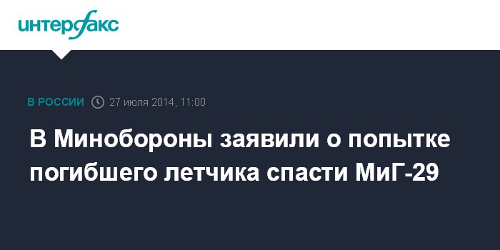 Москва. 27 июля. INTERFAX.RU - Летчик МиГ-29, потерпевшего крушение под Астраханью, пытался спасти самолет, и погиб.