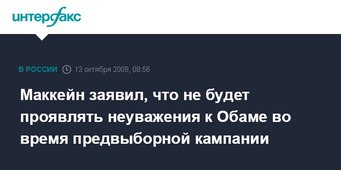 Маккейн заявил, что не будет проявлять неуважения к Обаме во время предвыборной кампании