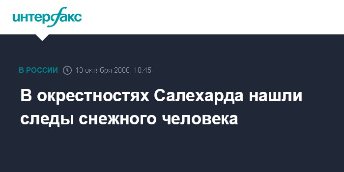 Москва. 13 октября. INTERFAX.RU - Ямальский охотник обнаружил и заснял на камеру мобильного телефона следы, похожие на человеческие, но значительно превышающие их по размеру, в 10-12 км от Салехарда (Ямало-Ненецкий автономный округ).